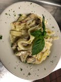 Served with mushrooms and artichokes in a light cream sauce.